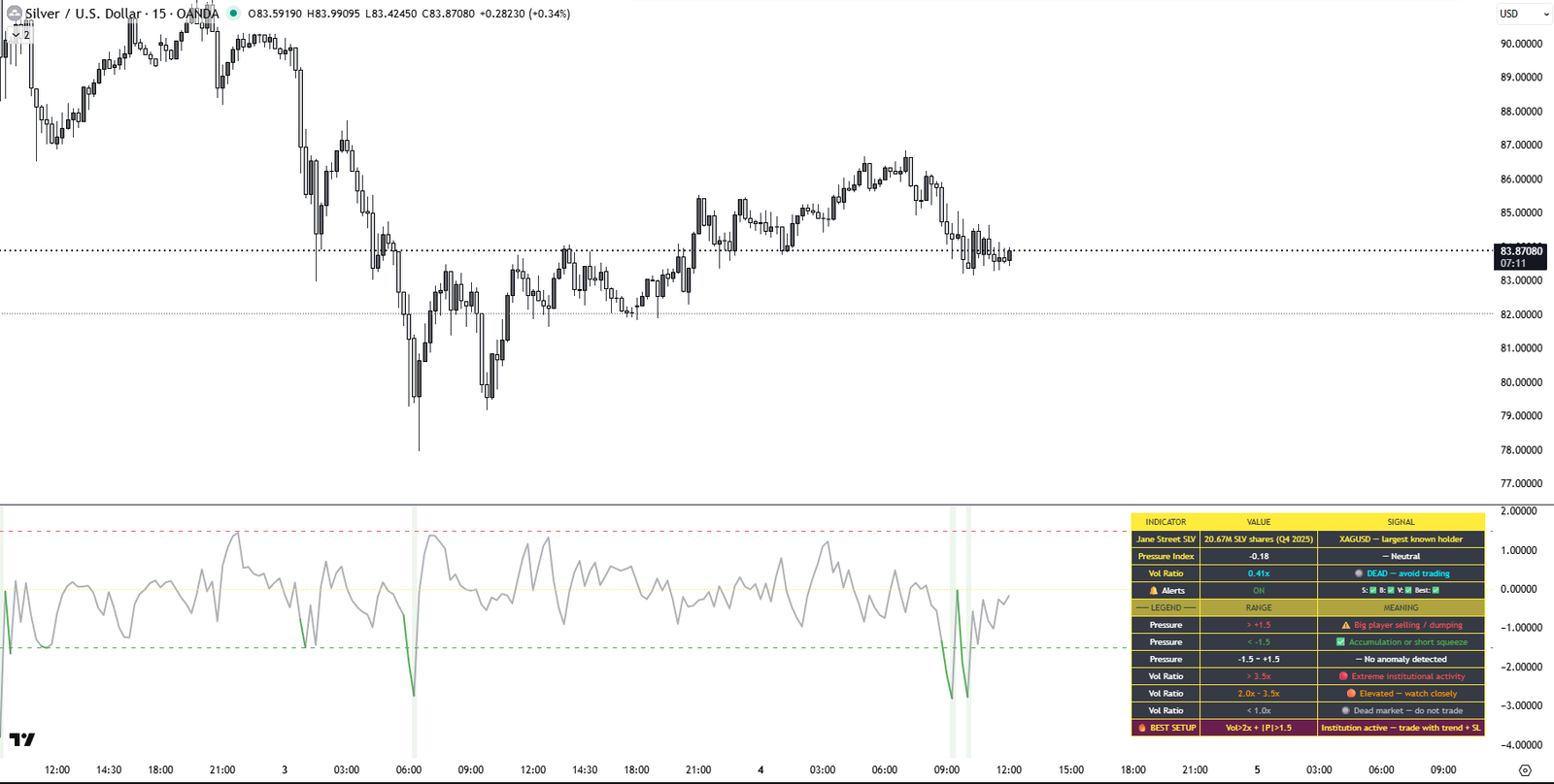 Indicator Type: Volume / Volatility / Institutional Activity Recommended Timeframes: All (1m to 1D+) Assets: Silver, Gold, Bitcoin, Ethereum, Forex, Indices — any TradingView symbol